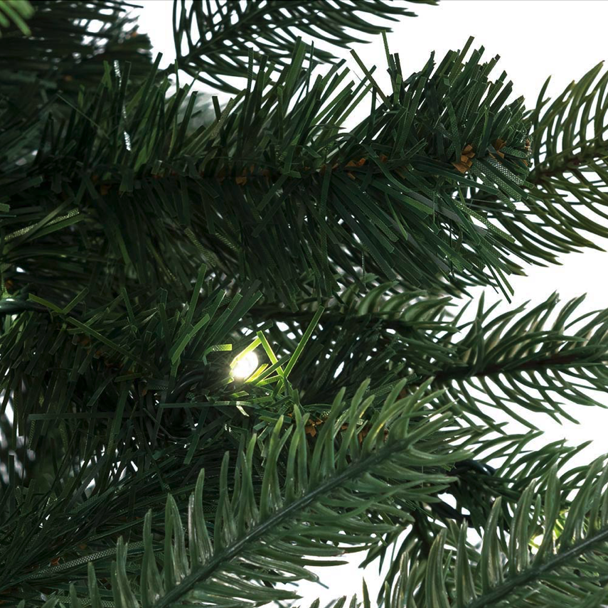 De boom is uitgerust met een stevige metalen voetplaat van 100 cm doorsnede die eenvoudig weggewerkt kan worden. Dankzij de slimme stalen ringconstructie zitten alle takken stevig vast en vallen ze vanzelf open zodra je de boom opzet, geen gedoe met losse takken of insteekdelen.