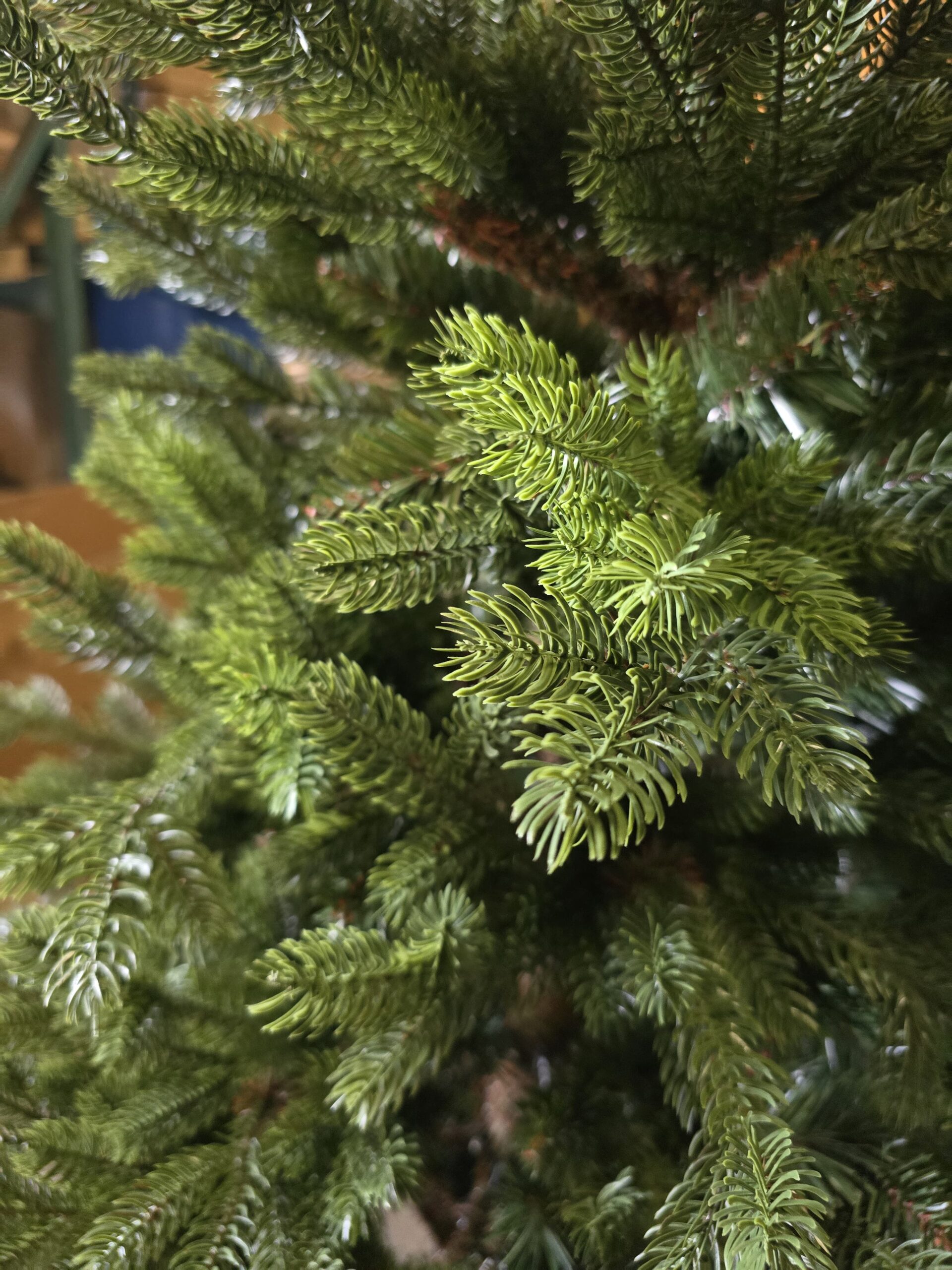 Met maar liefst 12.712 takken, waarvan 9.910 zijn gemaakt van hoogwaardig PE-materiaal (geen gesmolten kunststof), ziet en voelt deze boom levensecht aan, de naalden hebben de uitstraling van een echte den, tot in detail verfijnd.
